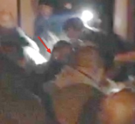Note the location of the guy in the white shirt with blue writing– his placement jibes with the placement of the person we believe to be McCoy, now just off-frame here: