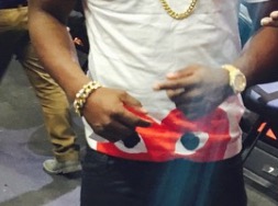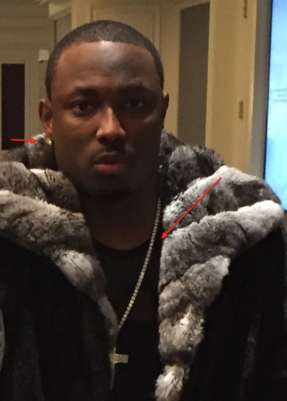 As you can see, McCoy was wearing the same thing both before and after the fight, and, at least in the latter photo, what appears to be a black t-shirt, gold chain, and bright, bright shoes. The person who sent us this video said McCoy was not wearing the jacket during the fight.
