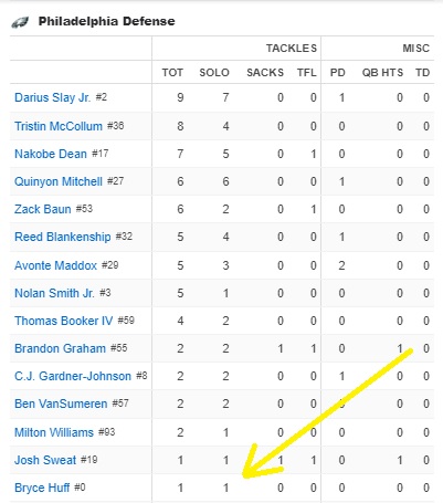 Yeah the Eagles got throttled on Sunday, but at least Bryce Huff got himself back into the box score: