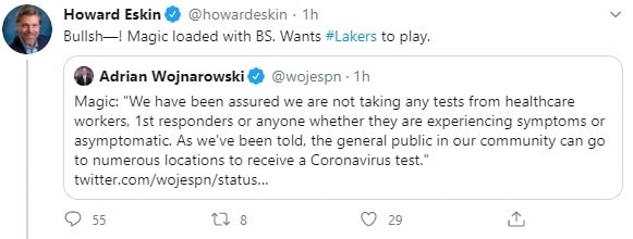 The funny thing is that Howard got two things wrong in a nine-word tweet. He thought Woj was talking about Magic Johnson, so that’s the first error. Second, Magic isn’t even involved with the Lakers these days. He resigned last year.