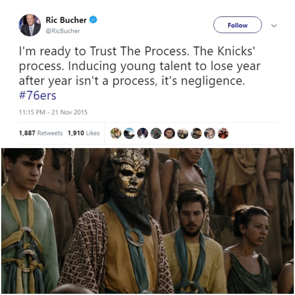 You might’ve thought, “Hmm… Dario Saric… Daario Naharis?” No, you fool. Dario Saric, just like Khal Drogo, is a revered and feared warrior from another continent who is never going to cross the sea. If he did, he’d likely get attacked by warriors with better lateral quickness.