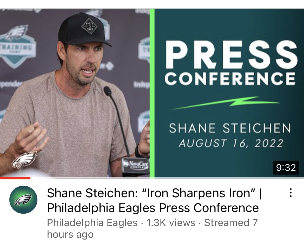 Let’s get to the new batch. We have three new “iron sharpens iron” from the Eagles alone, starting with Birds YouTube making it the main takeaway from Shane Steichen’s Tuesday press conference: