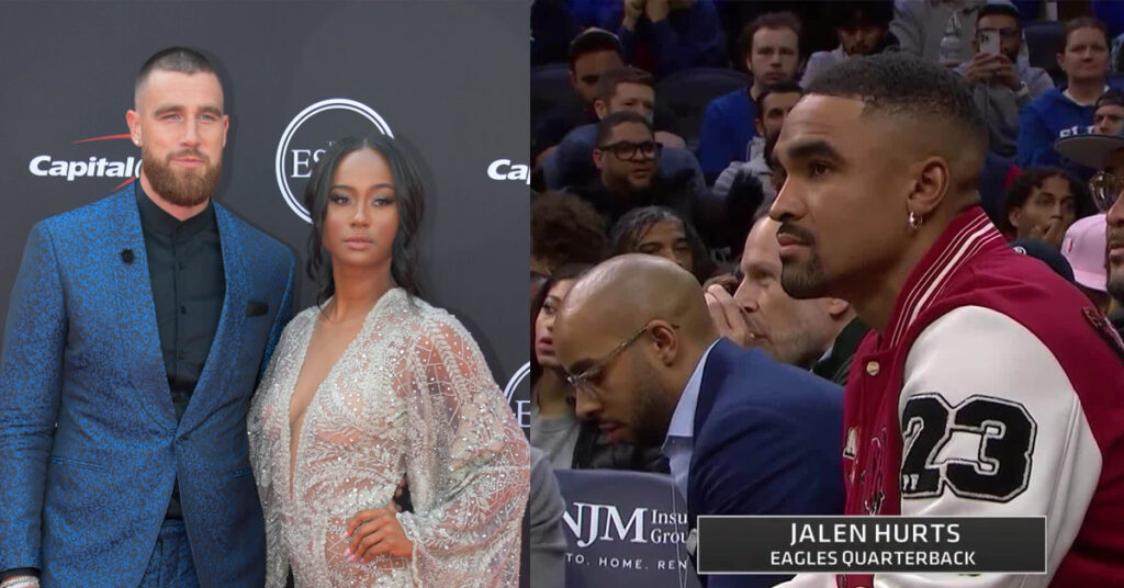 Jalen Hurts was sitting courtside at the Sixers/Lakers game. It was all over social media on a slow sports Monday and Travis Kelce’s ex-girlfriend took notice: