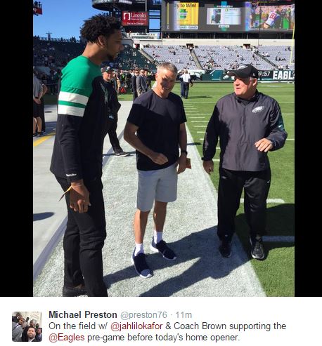 Jahlil Okafor and Brett Brown are Hanging out with Chip Kelly