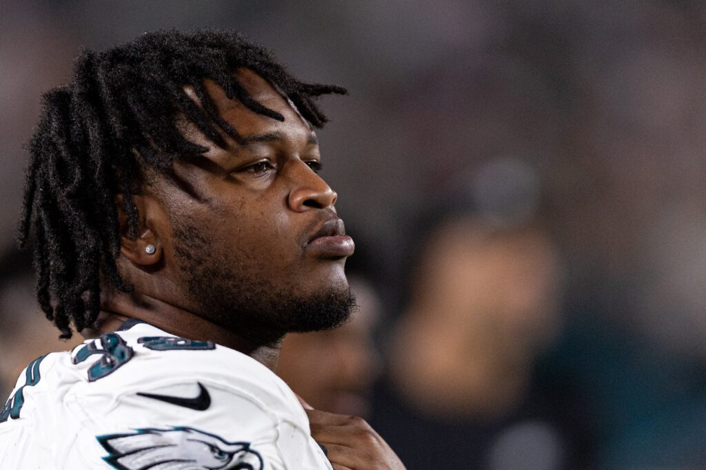 On the ensuing possession, Jalen Carter remedied the situation, first contributing to a group sack on Baker Mayfield before clobbering Rachaad White and getting the ball back for the Birds, who would then kick a field goal to go into halftime up 13-3.