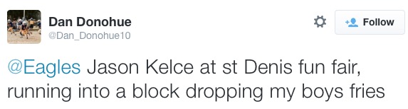Today in Jason Kelce, Everyman, we find the bearded wonder taking in the St. Denis fair in Havertown, which might be the most everyman thing a human in the Philadelphia area could do, just short of picking up a hoagie at Wawa on their way to a birthday party at Pica’s.
