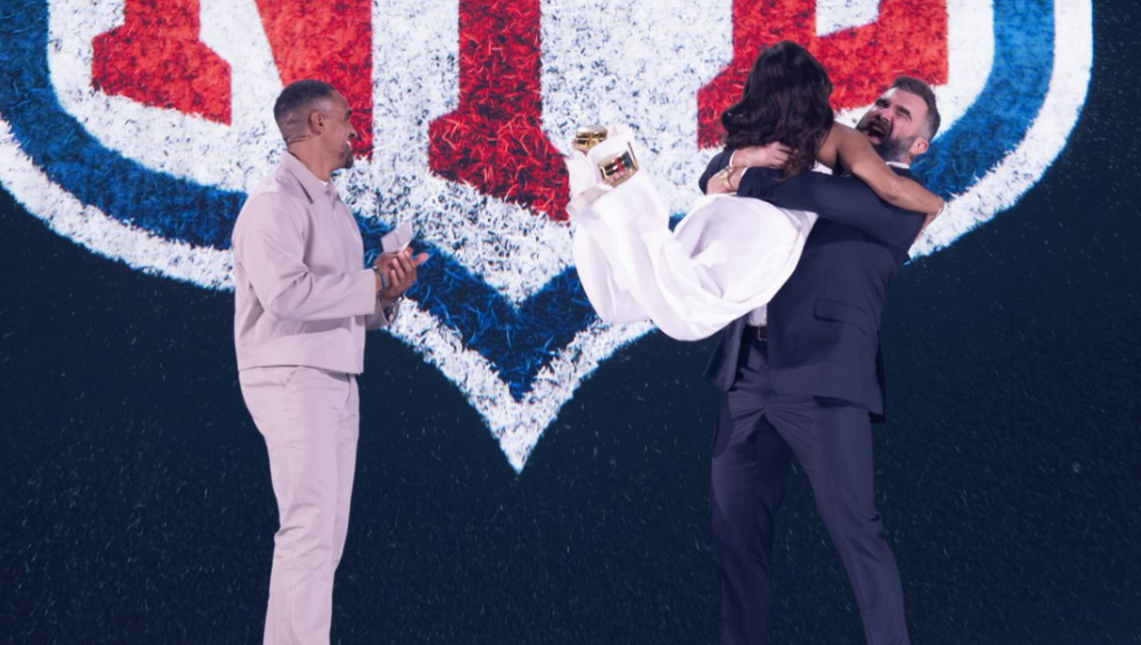 Jason Kelce was at the Disney Upfronts Tuesday officially announcing his deal with ESPN to be on Monday Night Countdown. Here he is picking up Philly’s own Quinta Brunson while Jalen Hurts looks on: