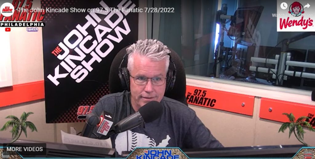 We were doing Crossing Broadcast today and a couple of listeners mentioned that John Kincade ranted about the Philadelphia Eagles during his Thursday show. The crux of the matter is that apparently Eagles players aren’t allowed to do media with 97.5 the Fanatic, and in setting up the rant, Kincade shared a story about how he was once embargoed from a team and instead set up a food stand outside of the parking lot: