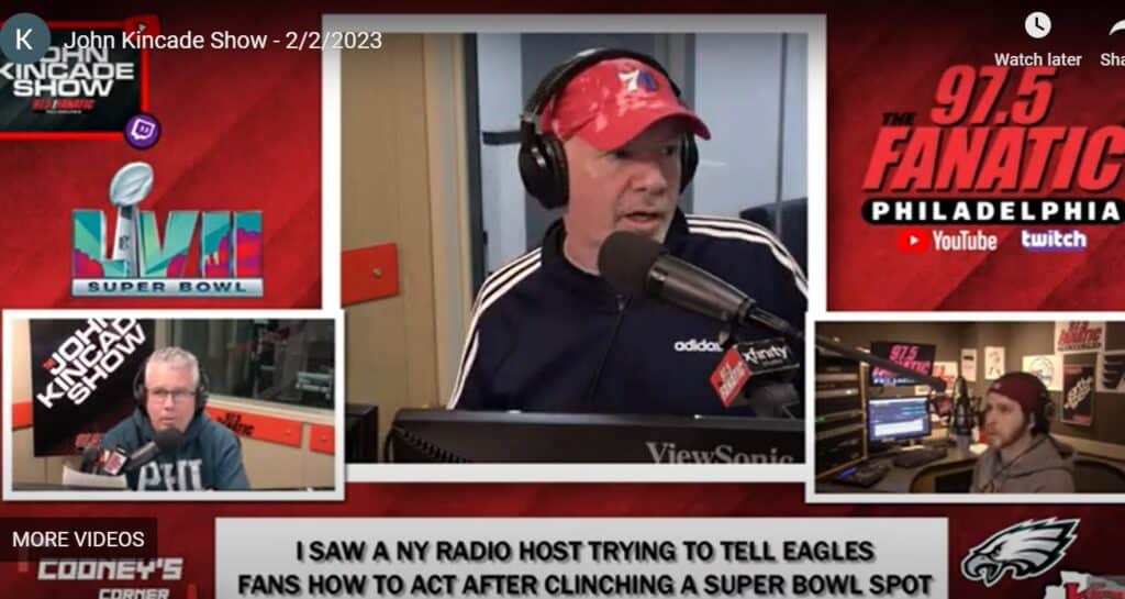 On Thursday’s edition of the John Kincade show, they ripped New York radio guy Shaun Morash, who called Eagles fans frauds because they were out celebrating instead of watching the Chiefs/Bengals game. It was corny and contrived bullshit, of course.