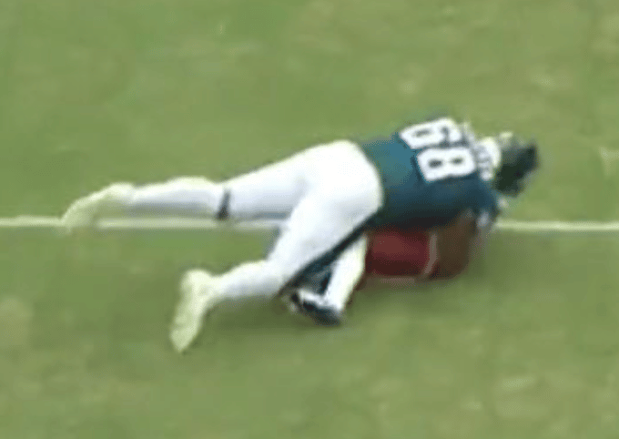 If you think you’re going to surprise Jordan Mailata on a corner blitz, spoiler alert, you’re not: