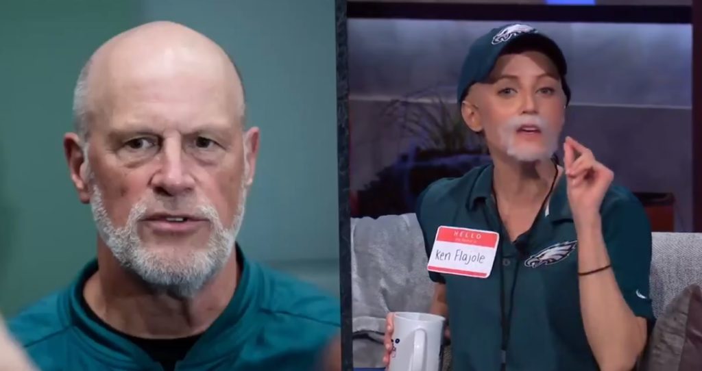 Kay Adams Dressed Up as Eagles Linebacker Coach Ken Flajole for Halloween