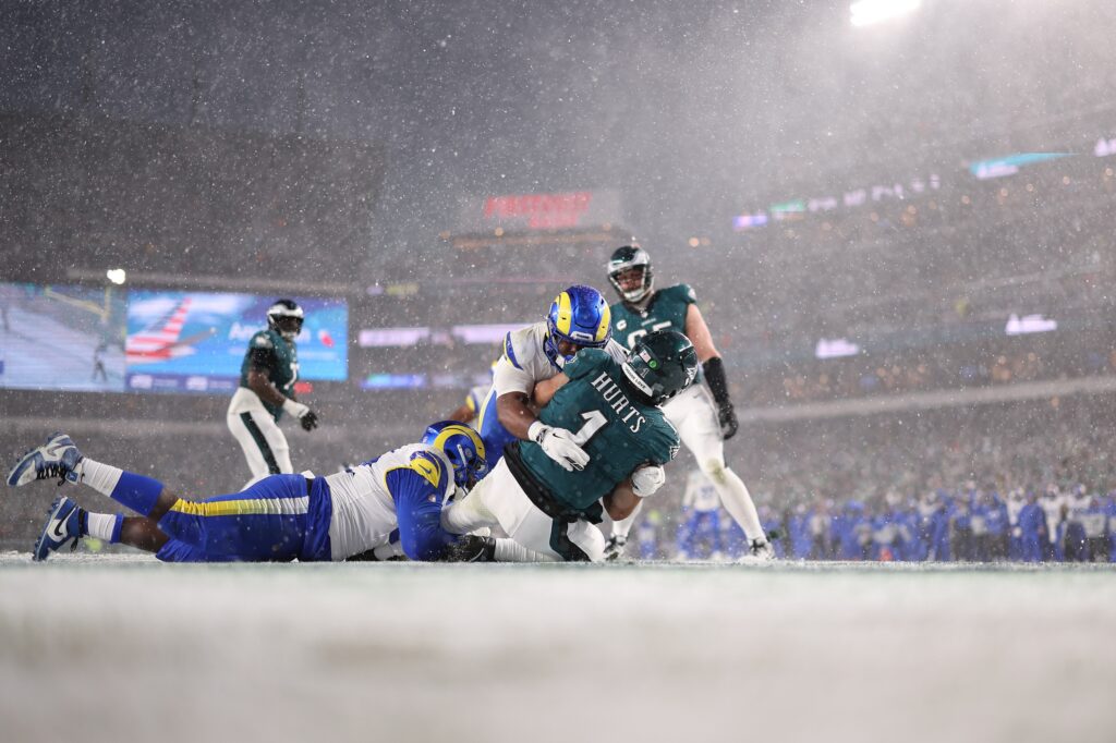 - Hurts didn’t get rid of the ball despite having Goedert in front of him and Saquon Barkley to his left