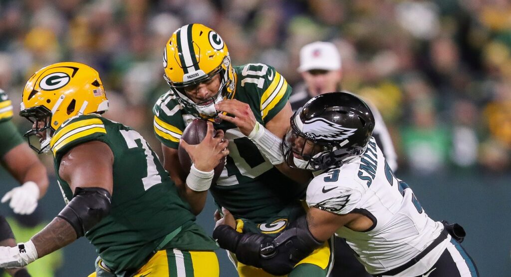 Tough Monday for Tunechi. He knows ball though. Love never looked comfortable in the pocket. There were multiple replays the broadcast pointed out where receivers were running wide open right over the middle, but he abandoned the pocket early. He didn’t get going until Vic Fangio started playing prevent defense late in the game with the lead. The Packers even took it out of their franchise QB’s hands on 4th and 1 with the game on the line and gave it to Josh Jacobs instead. Nick Sirianni even gave him a gift at the end there and all he could muster was 10 yards to set up a 64 yard field goal try. This is a top-5 quarterback? He’s lucky he has the excuse that all his receivers are in the infirmary. It’ll keep people off the stench for another season.