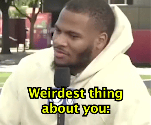 Jesus I feel like foot fetish is the last thing I’d reveal to people. Something weird? I wear my socks to bed or I have to have the TV volume on an even number. We went 0-60 real quick. Again not kink shaming here, but this is a children’s show. Millions of young Cowboys fans are finding out today what the most popular sexual fetish in the world is. Micah is building an army of Texas foot freaks (not a kink shame) who are going to grow up and want to soak their significant other’s feet in the closest thing they can get to a Super Bowl.*