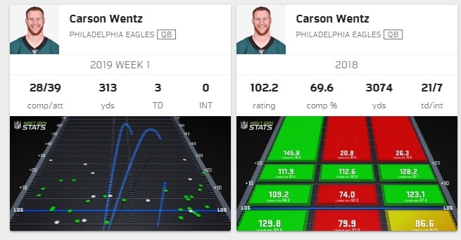 Certainly DeSean Jackson’s ability to take the top off the defense really helped open things up for Wentz, who found him deep twice for a pair of scores. In years past, Carson has finished below league average when throwing straight middle and to his right on attempts of 20+ yards.
