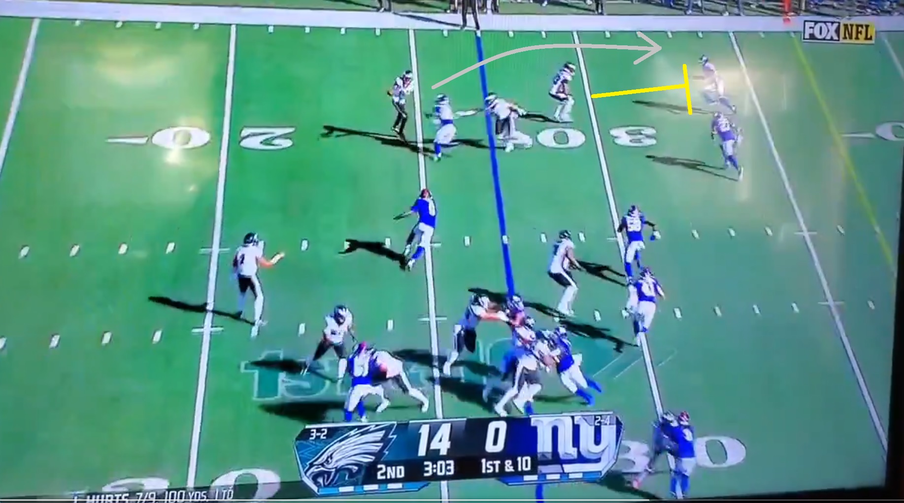 To me, this felt like a designed target for Smith, who wasn’t involved and wasn’t getting the ball. If it was, that’s good, but there are better ways to get him targets. Jalen Hurts missed him on what looked like a couple of instances in this came, one an egregious 3rd and 3 across the middle that would have moved the chains. They threw a 40-some-yard bomb to A.J. Brown on the very next play for a TD, but it’s one of those things where it still feels like they’re failing to execute on these short crossers and trying some funky stuff for no particular reason, like this play and the Saquon Barkley Wildcat snap.