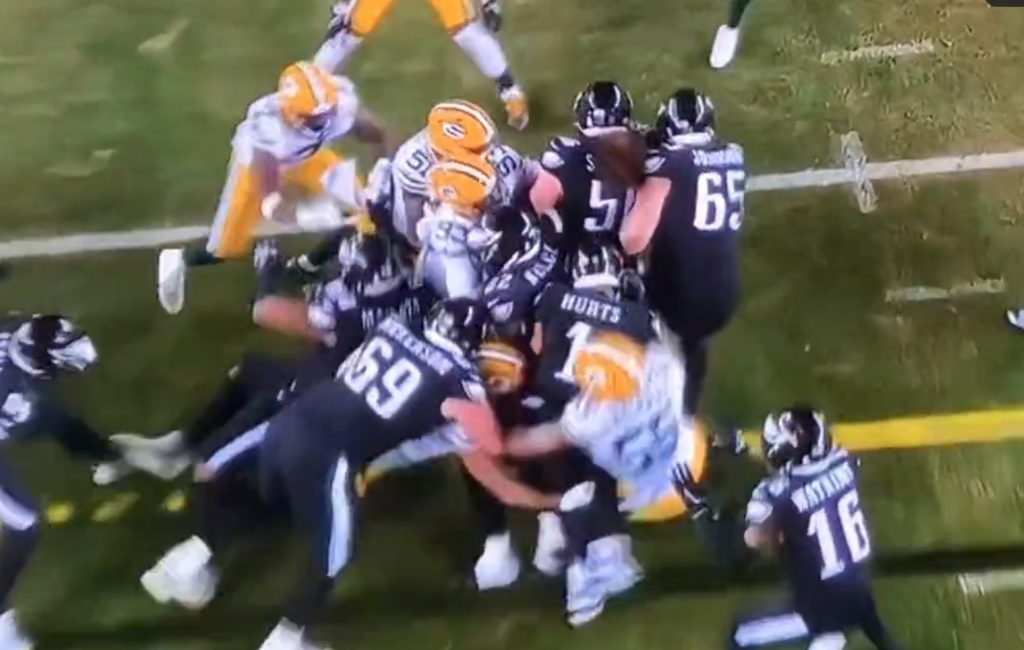 To me, it looks like the ball is over the (arbitrary) line before forward momentum stops and he’s pushed sideways. That was a big sequence there, too. If the Eagles move the chains and go down to score, it’s either 16-7 or 20-7 at that point, but it flipped quickly and Green Bay took the lead. There was also a missed facemask on the big 30-yard screen play that set up the Packers’ touchdown, so a couple of ref decisions there really impacted the flow of the game.