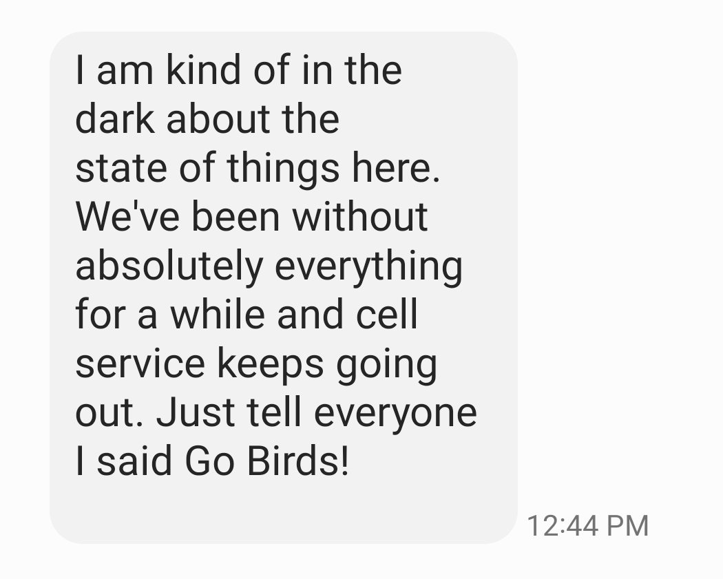 Silver lining: no power and no television means he didn’t have to witness what we witnessed.