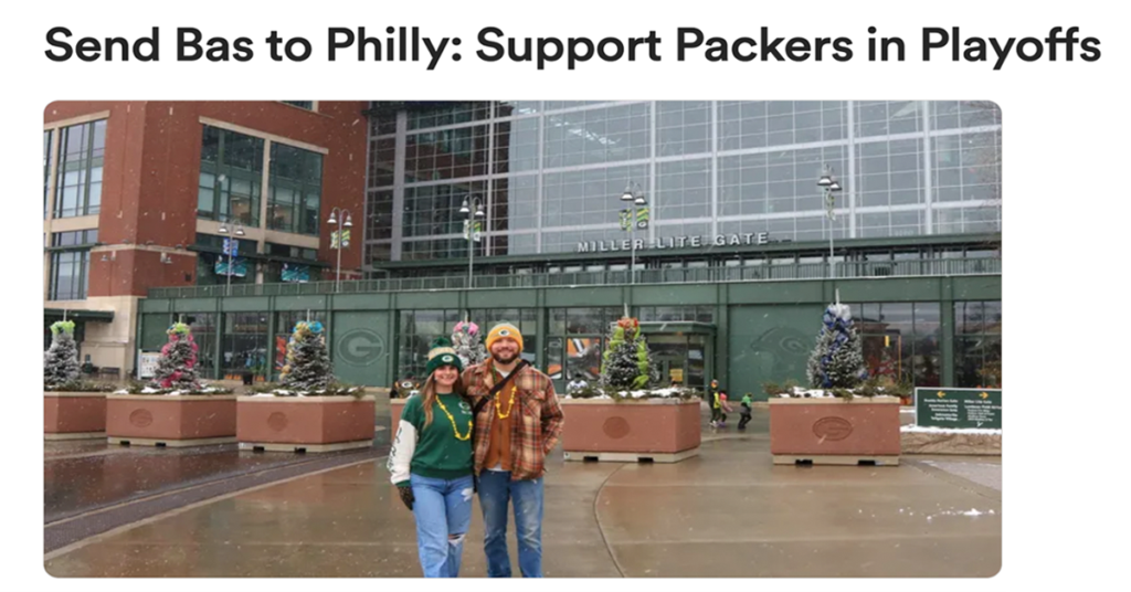 I finished the last post with, “Let’s get it back to the Eagles” and I wanted to get it back to the Eagles cause I’m already tired of this story from Sunday. Unfortunately this new development must be blogged. Someone on Twitter discovered the Go Fund Me of the guy Packers fan in the video. He set one up so his viewers (he is a Packers content creator) could pay for his tickets to the Linc… which he lives an hour away from apparently: