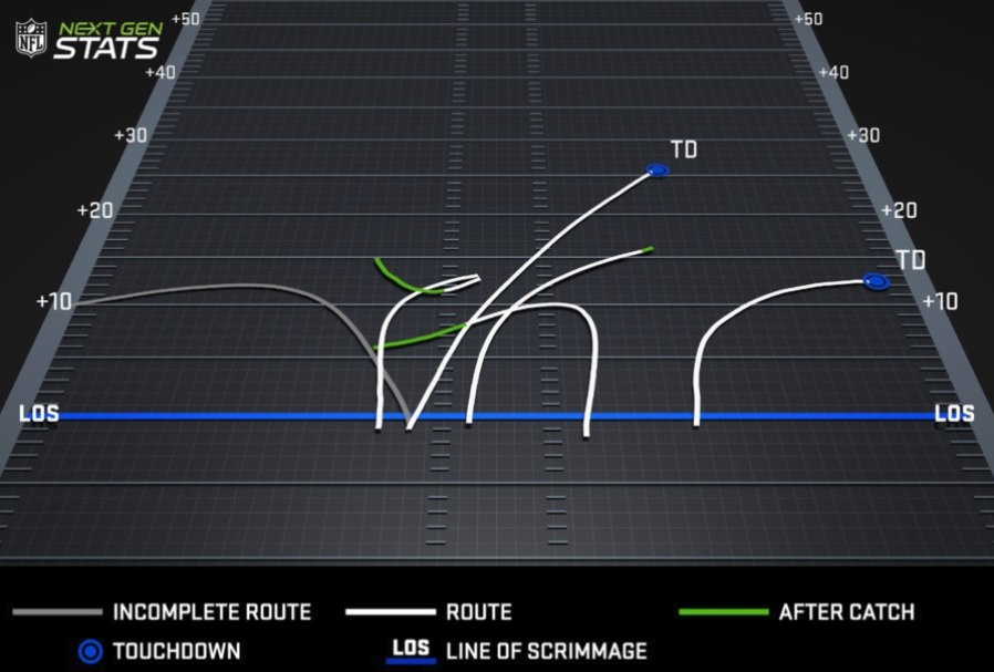 Burton was particularly solid, catching five balls for 71 yards and 2 scores. He only had 15 catches coming into this game and hadn’t gone above 60 yards receiving more than once in his entire career. He’s a free agent at the season’s end and will want to put this on his resume: