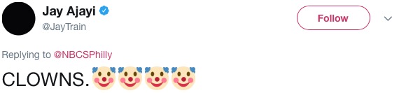 Ajayi fired back with clown Emojis, which Ray will never see because I’m not sure he owns a connected device or knows how to use one:
