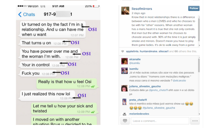 What Osi allegedly did: Put the fact that he is choosing to cheat on his fiancée all on his sidepiece, basically saying it’s all her fault, and throwing in an “lol” for good measure.