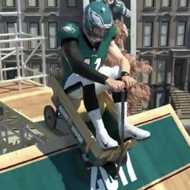 Also, what was up with the graphic showing Wentz sitting on a wagon? What the fuck is this? –