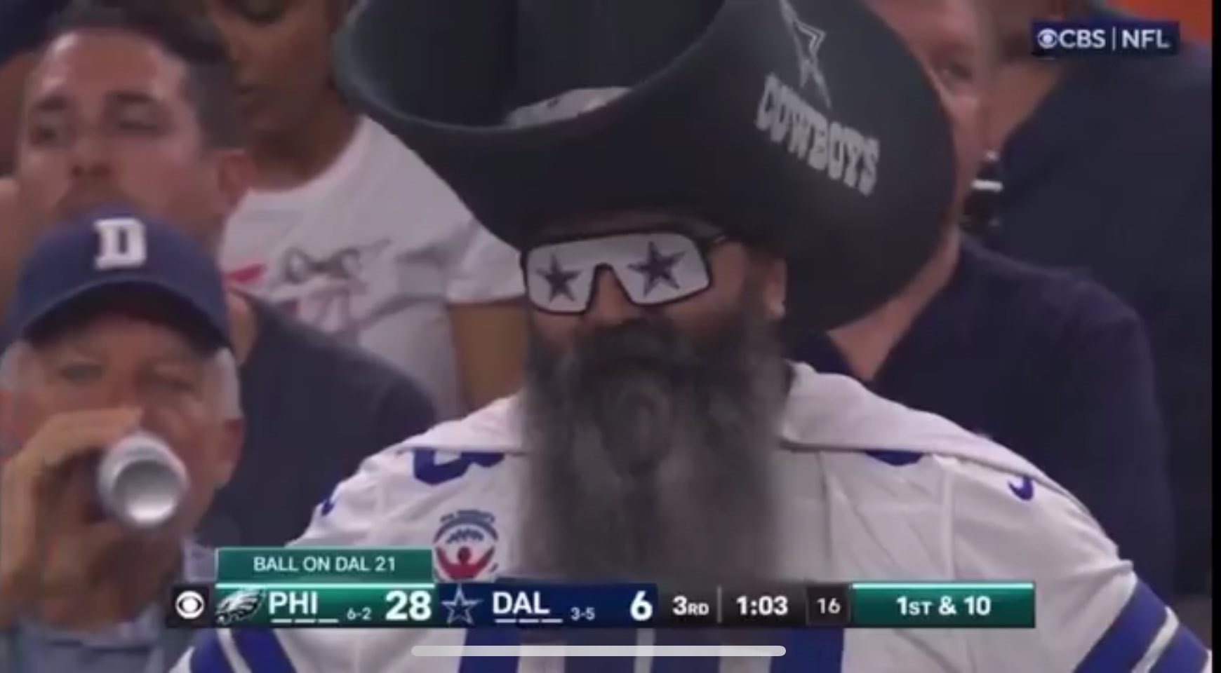 20) Final point – it’s funny to hear Rush and Lance do Dak’s stupid “here we go!” thing at the line, especially down by 28 points in the fourth quarter. Hilarious. HOW BOUT THEM COWBOYS! Poor Billy Gibbons had a rough one: