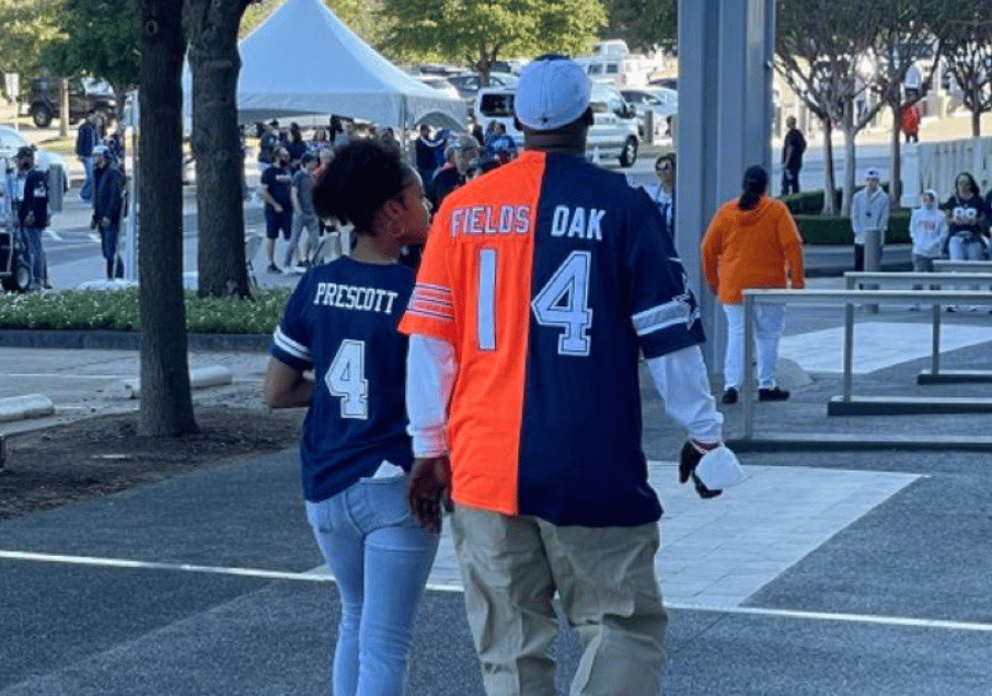 What a Frankenjersey? I was trying to find a relation to Justin Fields and couldn’t discover anything other than they both played at Georgia. But Fields is known more for playing at Ohio State than the one season he played for the Dawgs. Is this some weird QB fraternity thing? Like when Troy Aikman wants to tear apart a QB on Monday Night football, but instead delivers the nicest insult possible. This would be like Sam Bradford wearing a half Jalen Hurts half Matt Stafford jersey to a Rams game.