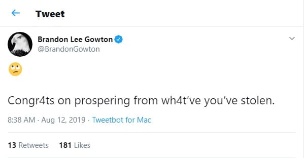 Gowton fired up the sub-tweet machine: