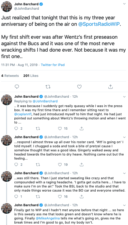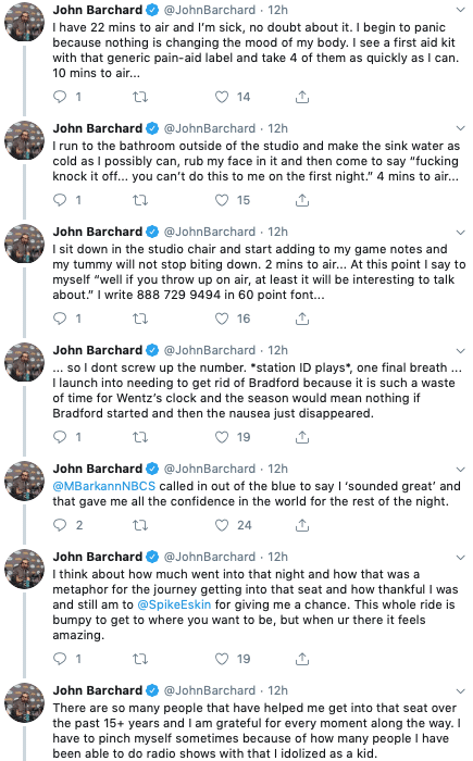 But opportunity being what it is, Barchard brought the show to the radio – first to 97.5 The Fanatic, and then over to WIP, where Spike Eskin has been assembling a crew of Philly sports Twitter to feature them in various capacities.