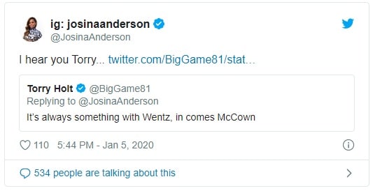 Next up, our friend Josina Anderson, who quote tweeted this nonsense from Torry Holt, which was later deleted: