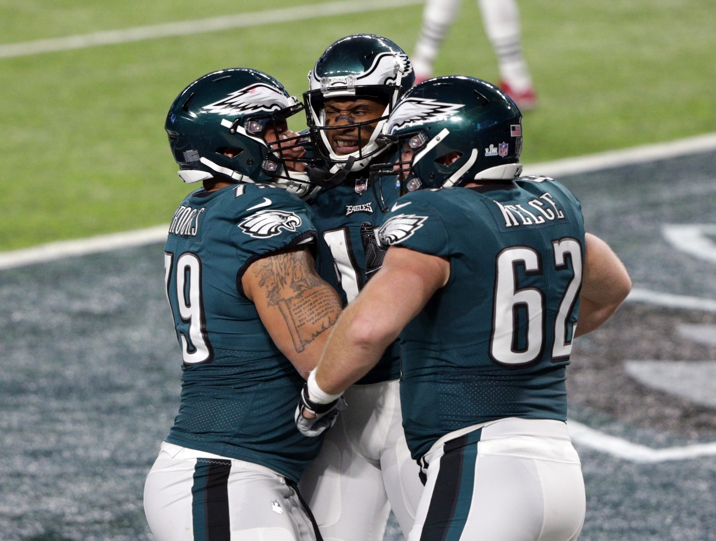 In the Super Bowl, the Birds put up 538 yards of offense and scored 41 points. The offensive line as a collective unit allowed zero sacks, five QB hits, five tackles for loss, and helped the running game average 6.1 yards per carry.
