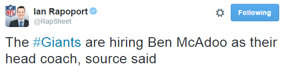 Report: Ben McAdoo will be the Giants’ Next Head Coach