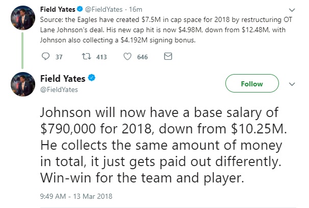 With the Eagles needing to shed nearly $10m in salary to get under the cap, they made big strides on Tuesday, according to ESPN’s Field Yates: