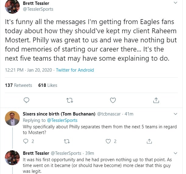 It didn’t work out back then, the Eagles/Mostert marriage, but both sides are doing just fine these days. I’ll leave you with this, from his agent: