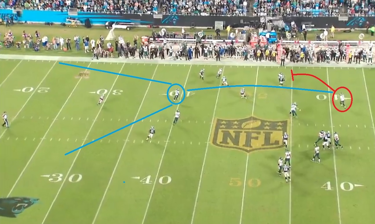 But at the moment Sam looked like he was about to throw, he was staring right at Josh Huff, wide open at Carolina’s 40 with a lot of room to run: