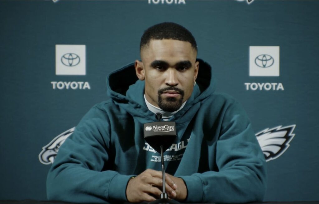 If you haven’t noticed because of that whole Thanksgiving thing and the fact you have a life outside of the Internet good for you.  But it’s been a weird couple of days on the Eagles beat. Maybe weird isn’t the correct word, but I’ve got a tummy full of mashed potatoes and that’s the only word my tryptophan brain can muster currently. But as I sit here in a food coma endlessly scrolling B̶l̶u̶e̶s̶k̶y̶  Twitter I’m starting to think the fellas on the Eagles beat are getting a little tired of all this winning. Winning doesn’t sell subs. You can’t write a scathing profile with unnamed sources and secret locker room conversations when everyone in there is happy because they’re beating the shit out of everyone. So what have they done? They’ve waited during the busiest time of the year when Eagles fans are occupied with giving thanks for Saquon Barkley and doing some holiday shopping to pepper in some questions to some of the highest paid players on the offense and ask them what they think about not throwing the ball enough or not getting as many targets as they’re used too. It started with Jalen Hurts on Wednesday and happened again to AJ Brown today: