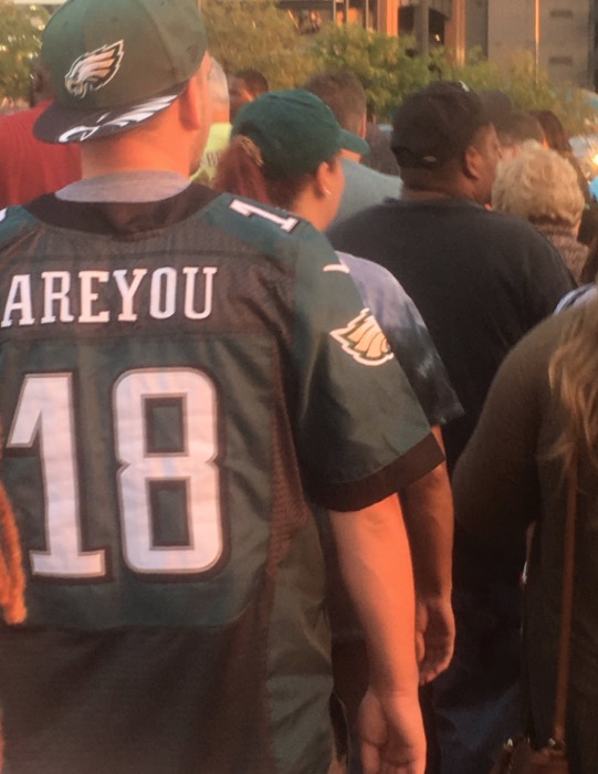 Strong. He went through the effort to customize (ruin) what looks to be an authentic jersey (you can tell by the different colored panels and what looks to be sewn on numbers). I used to manage the filters for MLB jerseys, and I can tell you this is about as far as you can go before you get automatically or manually flaged. Areyou looks like a wide receiver of maybe African descent. The number is positionally correct. This is a well-thought-out quest for young vajayjay. Fruitless, but well thought out.