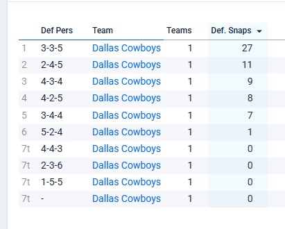For what it’s worth, the Sportradar data looks like this in terms of how Dallas lined up defensively in Week 12: