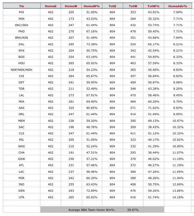 | Sixers | 43.91% | 51.00% | 7.09% | 9.87% | Last |