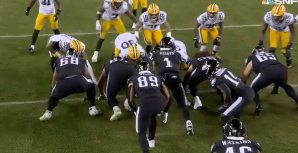 I immediately want to cry bullshit, but ho hum. Jalen Hurts squats 600 pounds. You can take away the double cheek push and he’ll still convert. He carried 310 pound Chris Jones for two yards for god’s sake: