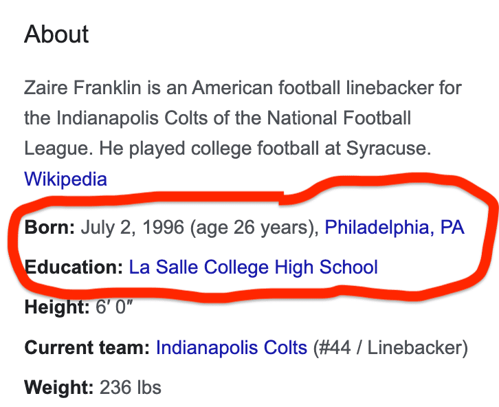 Good to see Zaire Franklin, the pride of La Salle College High School, sell out for his favorite team growing up by tackling Miles Sanders for a 39 yard P.I. call during the Eagles’ game-winning drive: