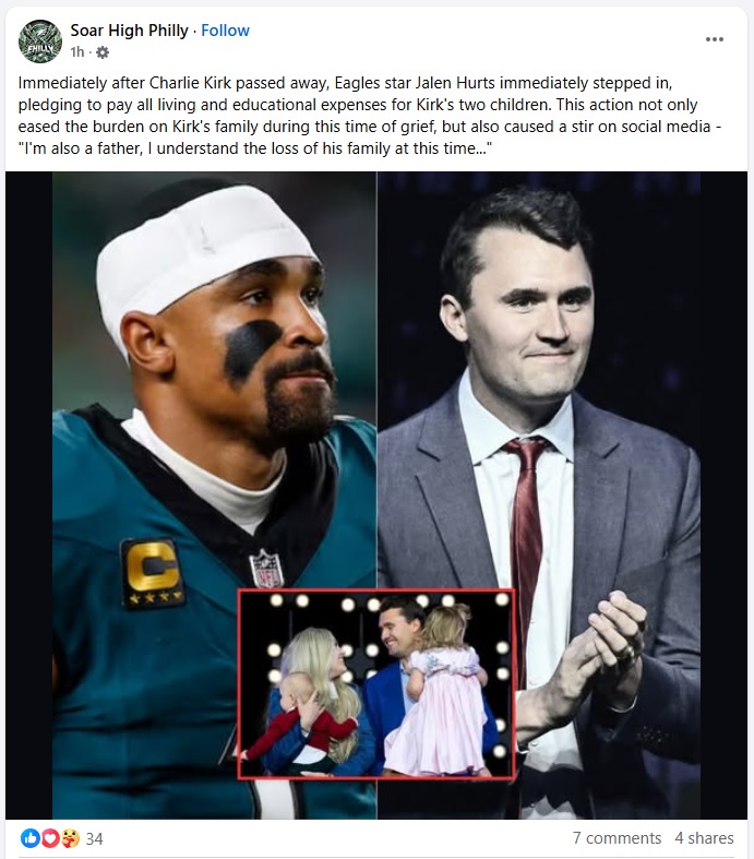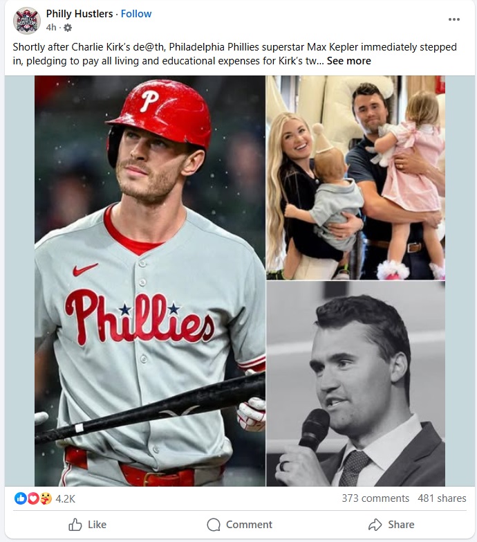 The Facebook Scam Accounts are Hard at Work Attributing Fake Charlie Kirk Quotes to Eagles and Phillies Players