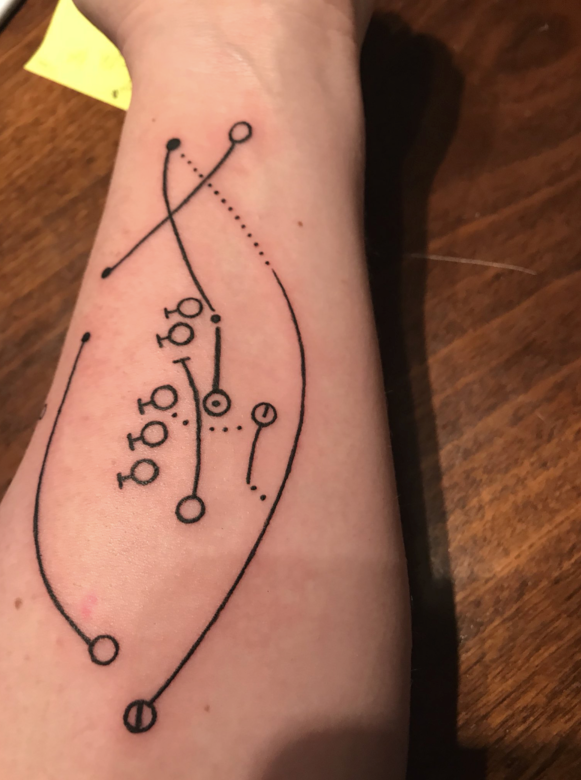 Dan Morgan has made all the media rounds after his tattoo of Philly Special went around the interwebs yesterday. He was even on FOX Good Day this morning. And while any diagram of the play will certainly look similar, I noticed that Dan’s tattoo looked exactly like the design on our t-shirt, which I first scribbled on the back of a sheet of paper.