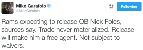 The Rams Are Reportedly Going to Cut Nick Foles