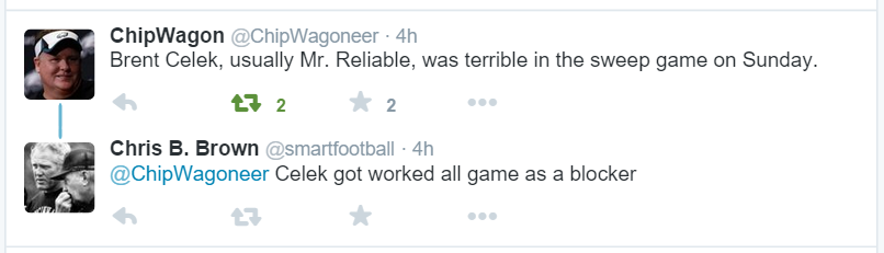 The point is, even if the Eagles were awarded two Pro Bowl guards out of sympathy, the problems with this running game wouldn’t be solved. They go far deeper. Is Murray having trouble grasping the Eagles running scheme? Are Peters and Celek on the steep downside of their long, successful careers? Is the offensive line simply discouraged or unable to communicate? That’s what OL coach Stoutland, Shurmur and Chip need to figure out ASAP.