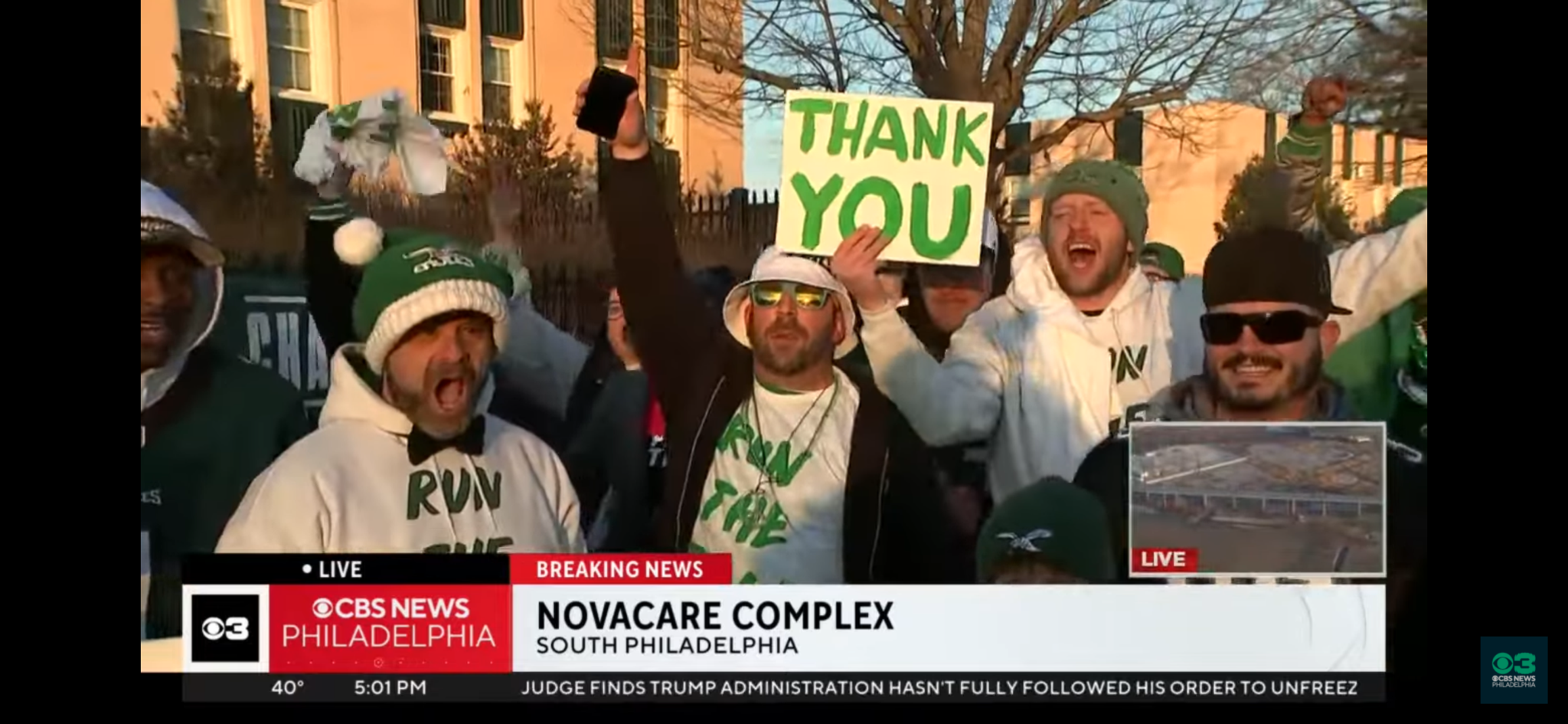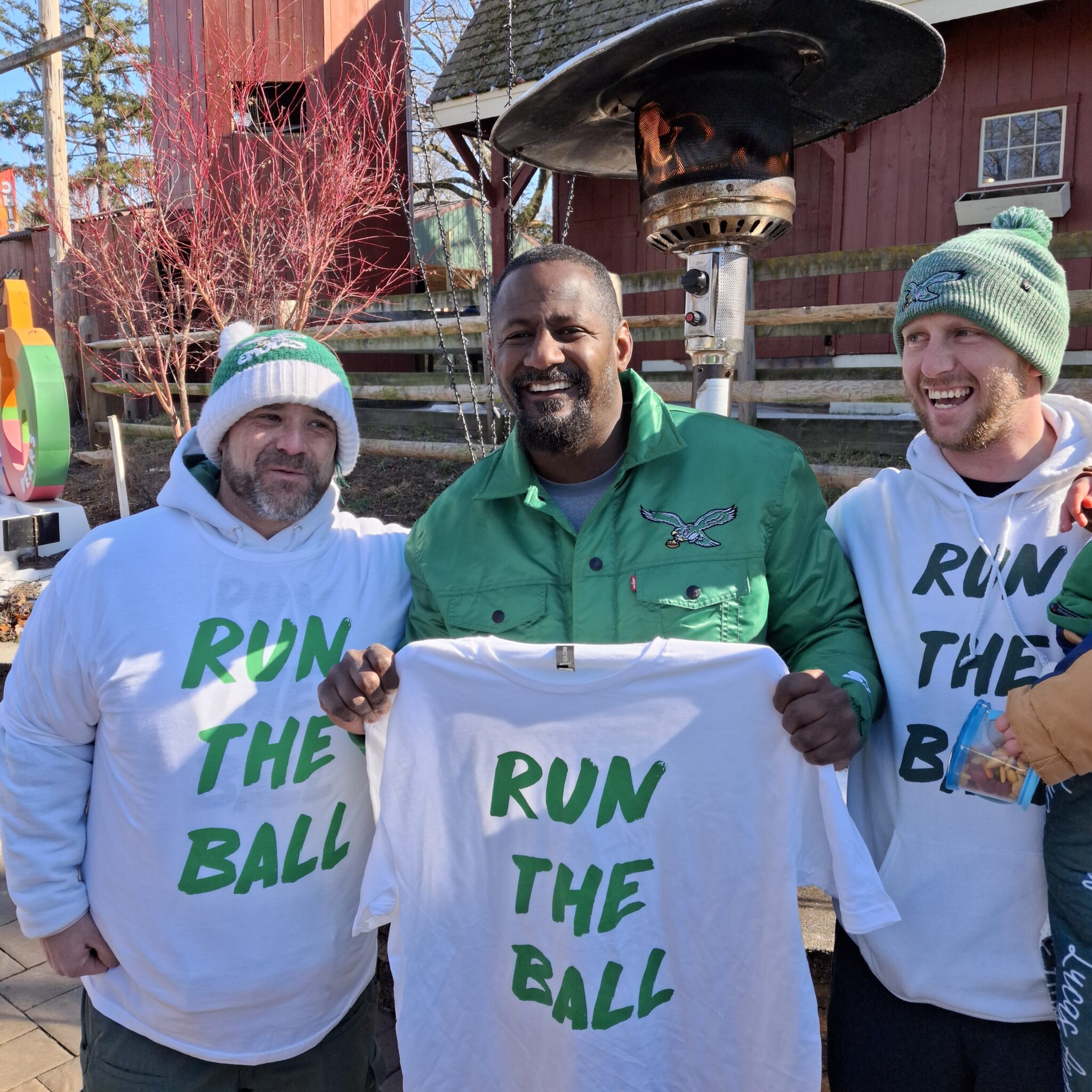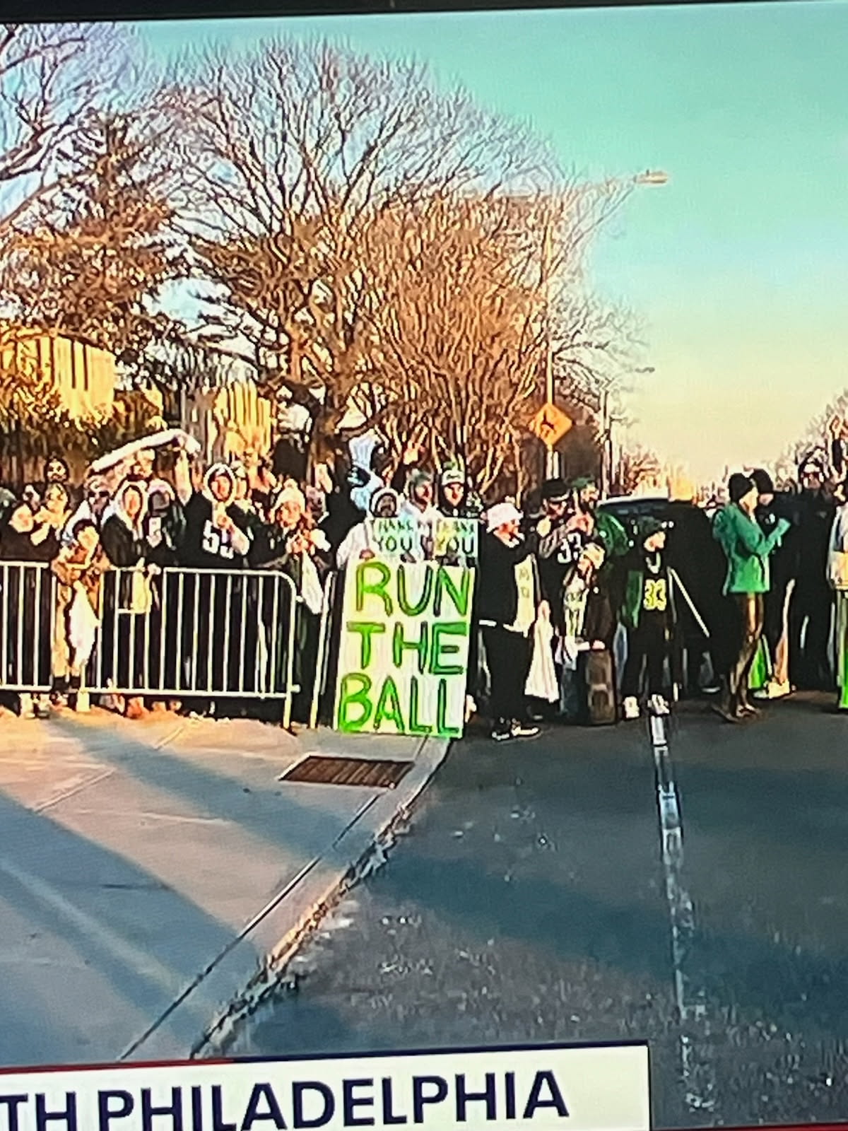 One of the Run the Ball guys is Joe, and he tells me that in addition to bringing the sign back to NovaCare, they handed out Run the Ball t-shirts to the fans who were down there. They were able to get a couple of the shirts to Brandon Graham and Big Dom. Then, at Friday’s parade, they started in South Philly and walked up to the Parkway and distributed more of the shirts along the way, which were wrapped with mental health awareness bands. They’re gonna turn this into a larger effort to “Run the Ball for Mental Health Awareness.” Joe tells me that when they first brought out the sign back in 2017, they then walked across the street to FDR Park to play some tennis and a round of golf. Now he’s thinking that he wants to organize a “RUN THE BALL for Mental Health Awareness Golf & Tennis Outing,” which sounds like a great idea.
