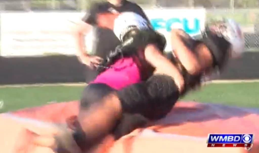 Why did it take so long for moms’ night to become a thing? Maybe the wussies out there think this is “problematic” or causes concussions or something like that. I disagree. This is a great mother/son bonding moment. “Hey you didn’t clean up your room, I’m here to lay the wood.” The laughs are awesome. We need more video of moms in full pads hammering their sons.