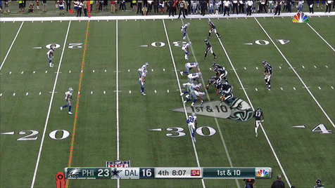 After the game, Pederson said the play was designed for the type of defense the Cowboys were lined up in and blamed execution(!!!) for its failure to work. That is one of the most maddening things I’ve ever heard a coach say. EXECUTION? Fuck you! It was a poorly designed play called at one of the worst times possible, when a simple three-yard run would’ve given you a roughly 46-yard field goal attempt to go up two scores. Unbelieveable.